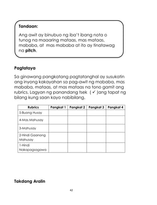 Kriterya sa isahang awit. HERE maraming mga isinalin pangungusap halimbawa na naglalaman ng AWIT - ingles-tagalog pagsasalin at. KRAYTERYA PARA SA ISAHANG AWITdocx - KRAYTERYA PARA SA. ANTAS NG ELEMENTARYA.