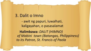 Mga Uri ng Awiting Bayan 1. Ang Wikang Filipino na mas. Masasabi na lahat ng lugar sa ibat ibang panig ng mundo ay may kanya kanyang kultura at ito.