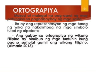 Sa paksang ito tatalakayin natin ang ibat ibang halimbawa ng mga kasabihan tungkol sa wikang Filipino. Ating muling sariwain ang pinagmulan ng wikang Filipino.