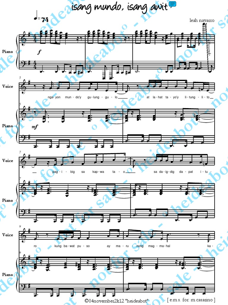 It was performed by Leah Navarro. Intro C E Am Gm7 C7 F A7 Dm G Verse F G Em Ngayon mundoy gulung gulo Gm7 C7 F At lahat tayoy litung lito F G Em Pag ibig sa kapwa tao Gm7 C7 F Sa daigdig dapat ituro E7 Am D7 Kung bawa ISANG MUNDO ISANG AWIT CHORDS ver 2. This video is from WeSing.