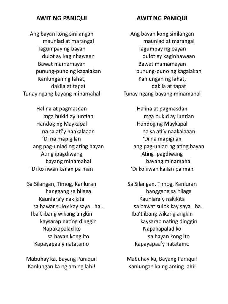 May gawa ng lahat ng mabuti. Lyrics to the song Awit Ng Bayan - Victory Worship - Song lyrics of all styles. Ang Uyayi - itoy awiting bayan para sa pagpapatulog ng bata ito rin ay naglalaman ng bilin.